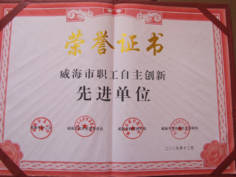 公司获得九州在线登录市职工自主创新先进单位